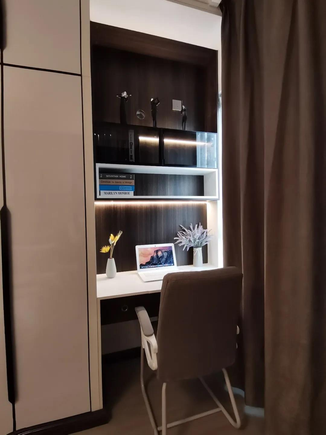 样板间设置约5.3m阔绰景观阳台,270°环幕视野,近览央景园林,约4.2m双厅精致一体,L型开放式厨房约23㎡,奢阔主人房,超大观景飘窗个性专属书房,灵动工作空间